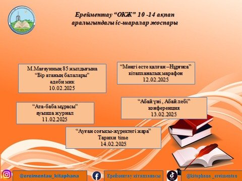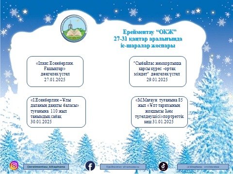 Іс-шаралар жоспары 27 - 31 қаңтар