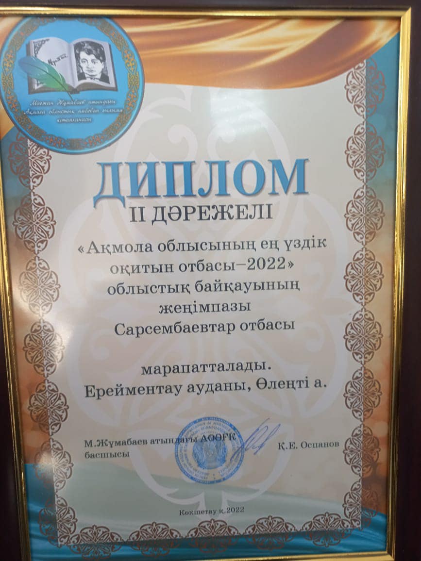 “Ақмола облысының үздік оқитын отбасы 2022” байқауында Өлеңті ауылынан қатысып отырған Сәрсембаевтар отбасы 2-орынға ие болды! Құттықтаймыз!!!