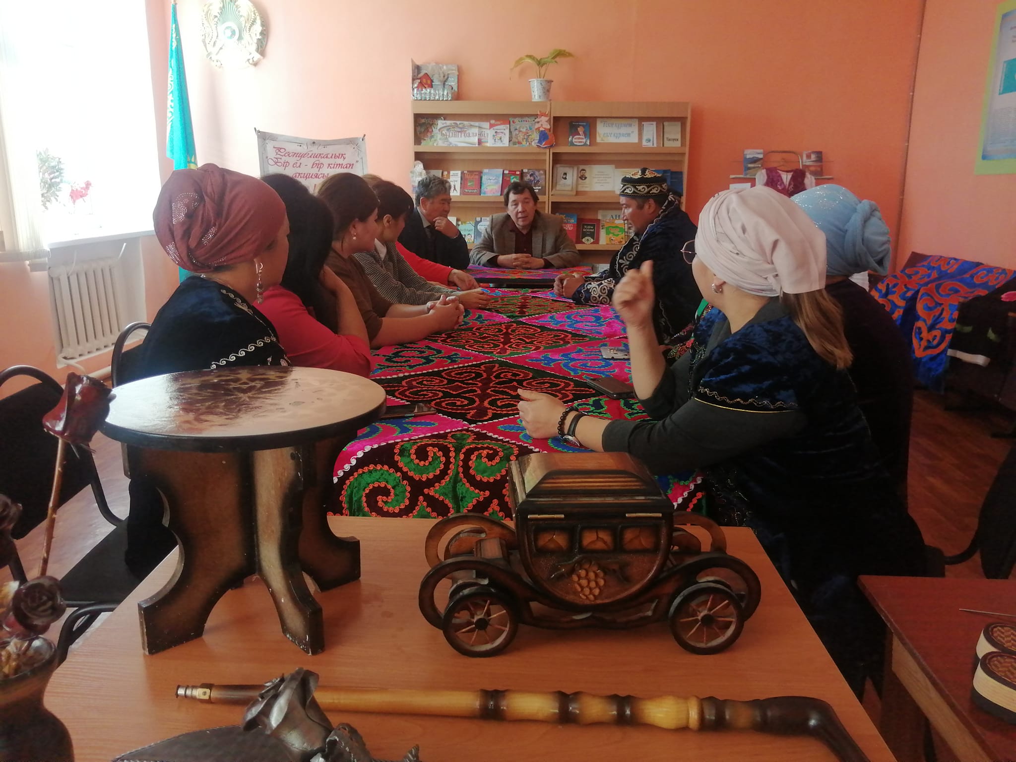 Олжабай батыр ауылдық модельді кітапханасында ауылымыздың қолөнер шеберлері және Олжабай батыр ауылдық ЖОББМ-нің директоры, тарих пәні мұғалімдерінің және ауылымызға арнайы келген ЮНЕСКО жобасы бойынша материалдық емес мәдени мұралар бойынша ұлттық комитет төрағасының орынбасары, эксперт Музафаров Рустам Рахимұлы, өлкетанушы Әдірешов Манап Бектасұлының қатысуымен ұлттық қолөнерді ұрпақ санасына сіңіру, мәдени мұрамыздың сақталуына, жойылып кетпеуі үшін бірлесіп жұмыс жасау мақсатындағы кездесу, түсіндіру іс-шарасы өтті.